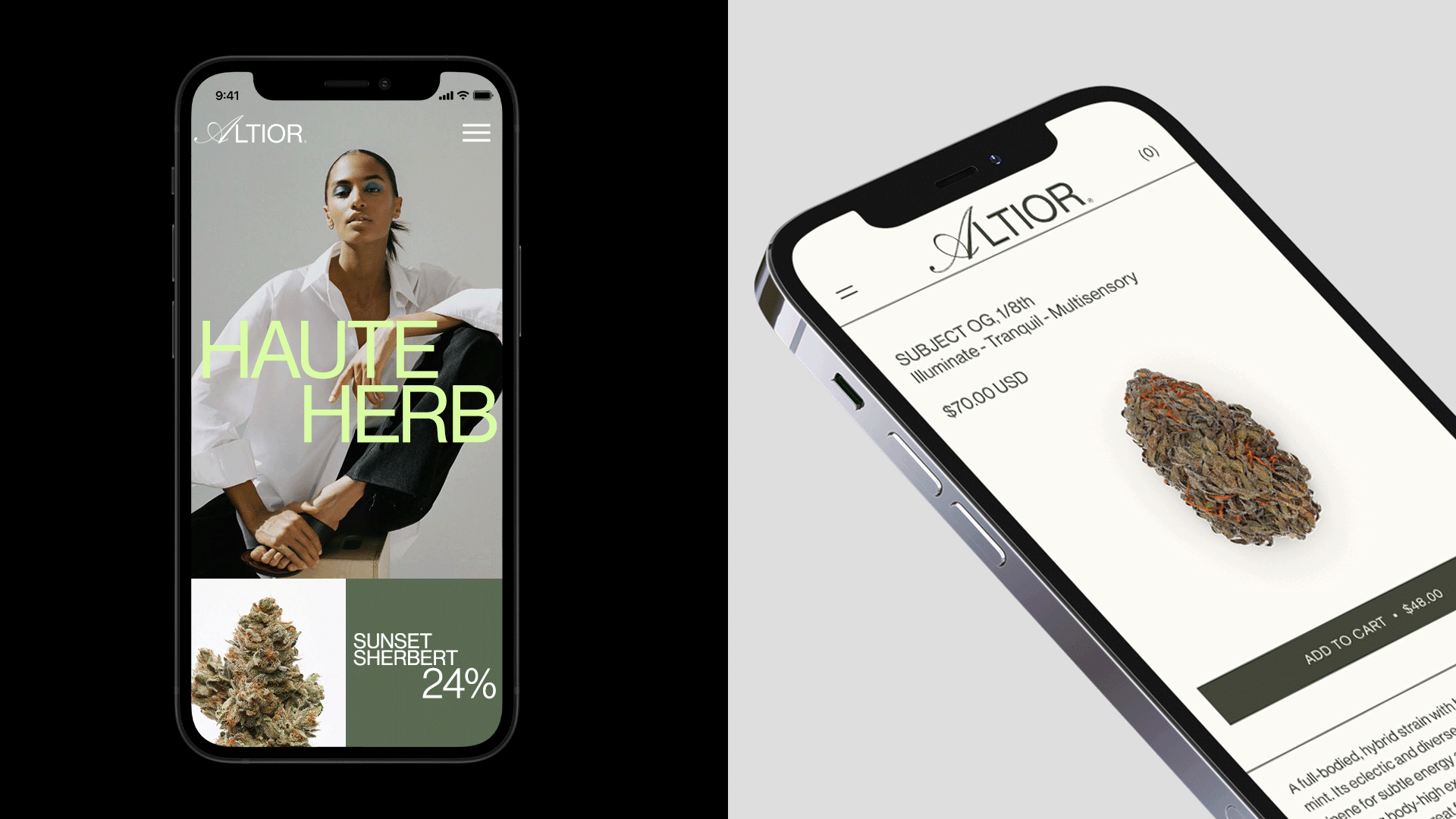 Altior, an elevated experience, redefines cannabis consumption into an ambiance that exudes timeless luxury. Our approach to the visual identity was to merge 'tradition', typically associated with high craftsmanship, with a modernist simplicity that creates a contemporary appeal.